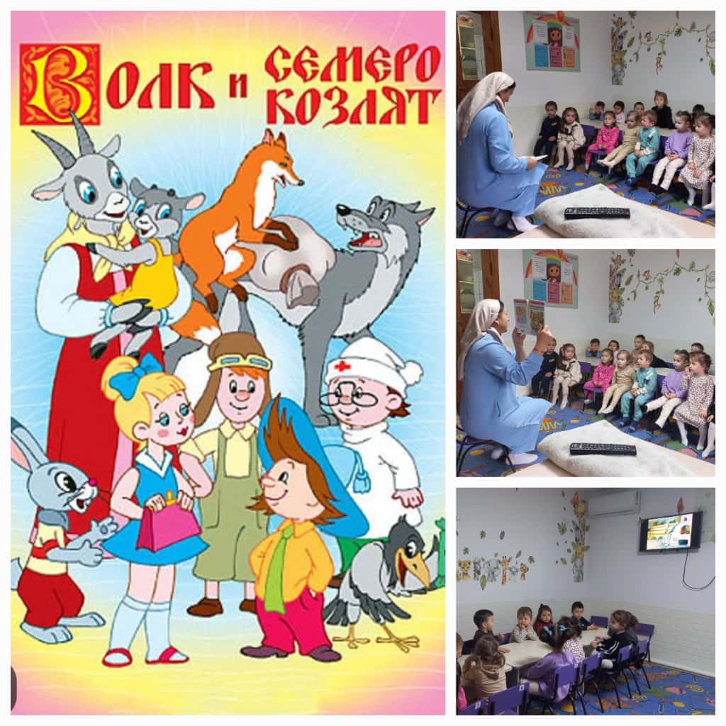 Развитие речи: русская народная сказка «Волк и семеро козлят».Цель: обучить детей основам безопасности, послушания родителям и важности осторожности. Сказка показывает, что не следует доверять незнакомцам и как важно слушаться маму, а также учит ...