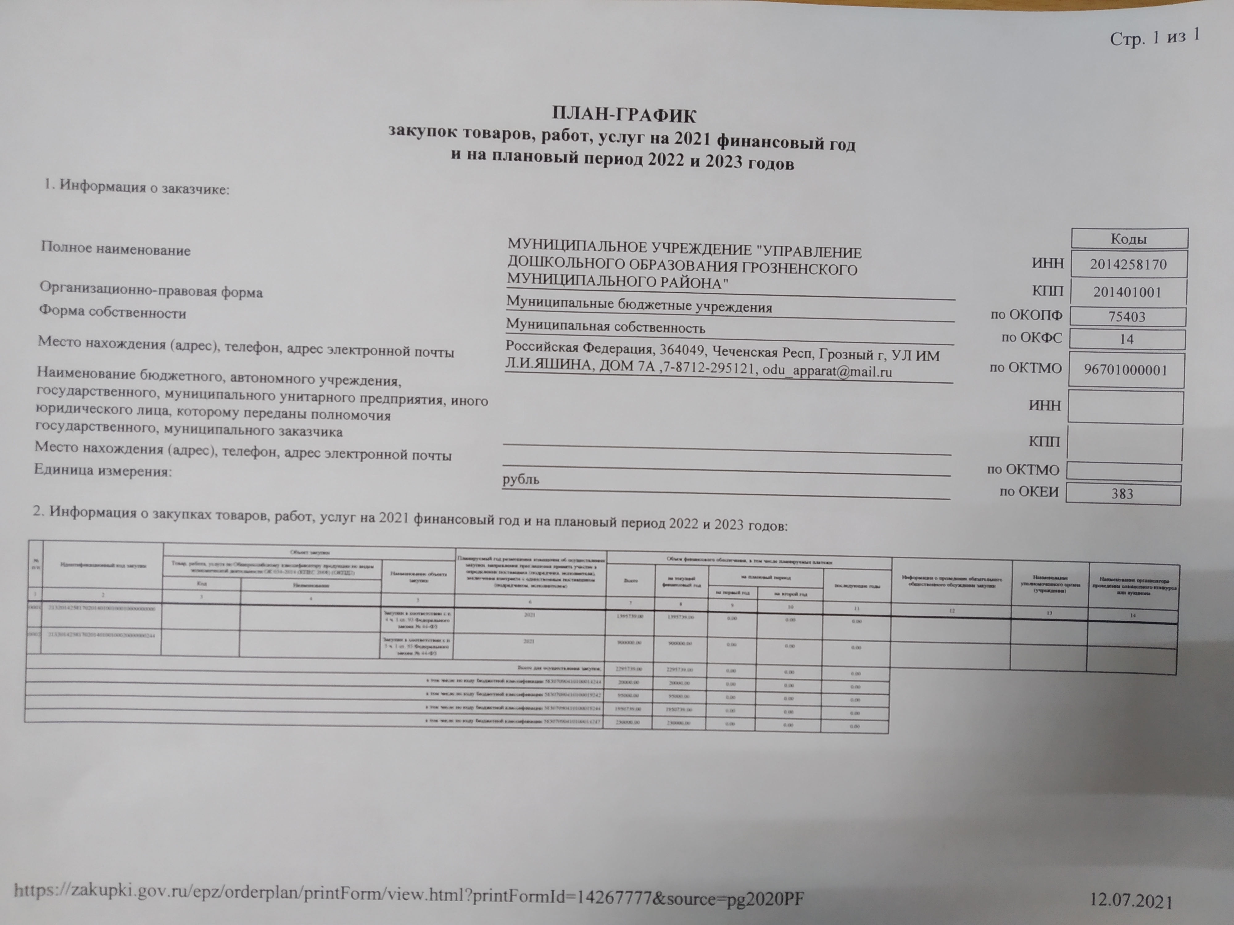 Отчет МУ «Отдел дошкольного образования Грозненского муниципального района" о проделанной работе за 2021 год