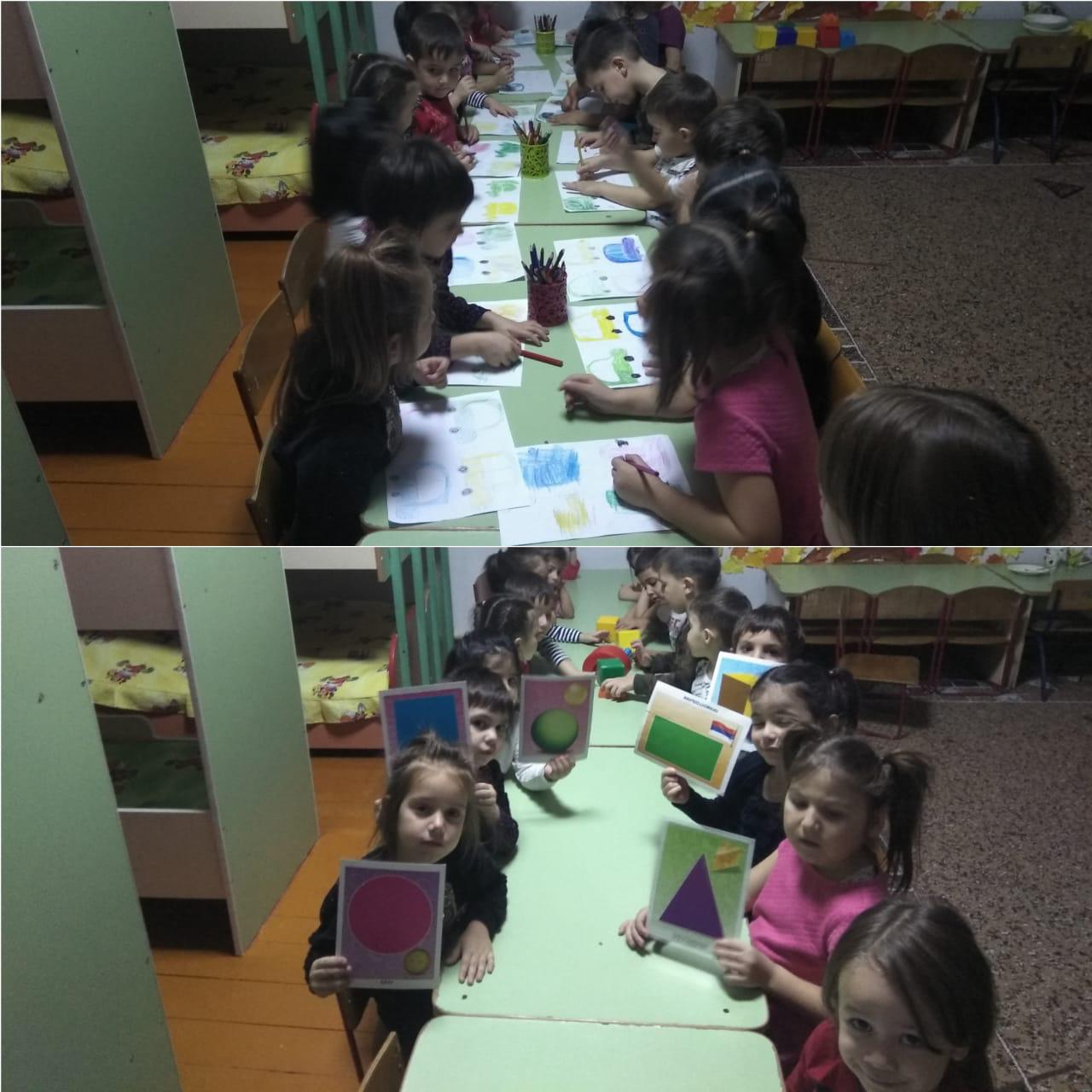 Познавательное развитие (ФЭМП). ТЕМА: Геометрические фигуры. Счёт до 4.Цель: тренировать в счёте до 4, в ориентировке в пространстве, в нахождении геометрических фигур. Средняя группа "Чебурашки".