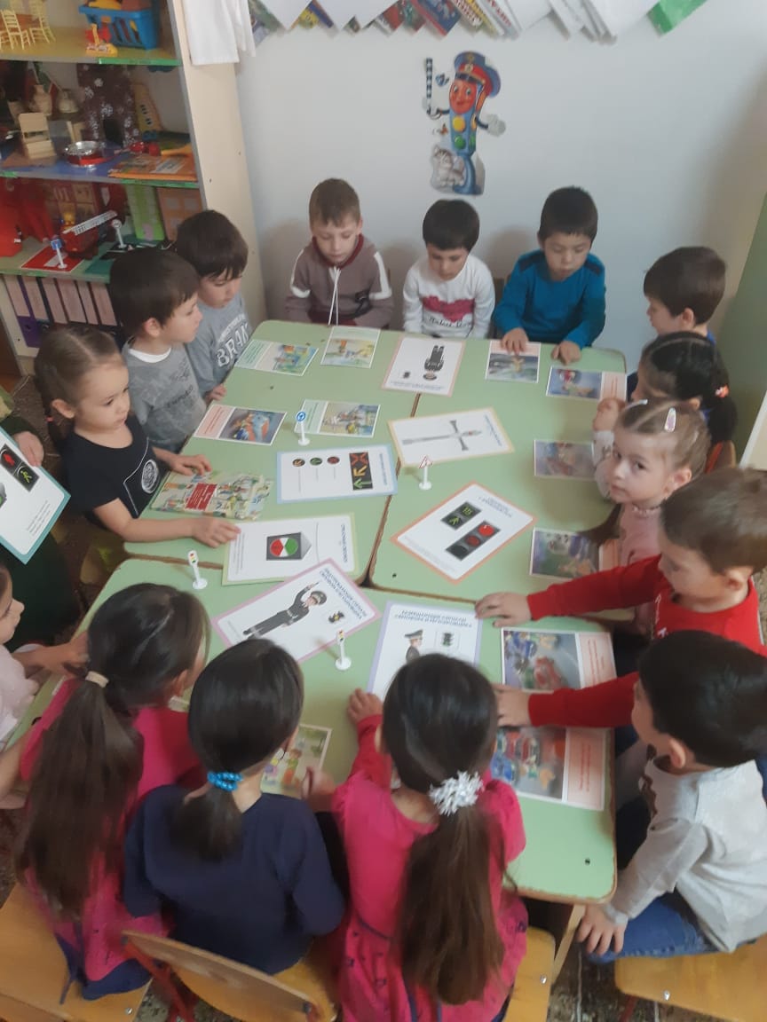 Цель: закрепить правила дорожного движения; повторить правила поведения в личном и общественном транспорте, довести до сознания детей, где нужно играть и где кататься на велосипедах.