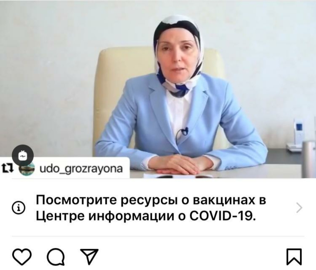 26.05.2021Глава Роспотребнадзора по Чеченской Республике Рита Термулаева записала видеообращение к жителям региона. В связи с наступлением летних каникул, она призвала жителей республики не отказываться от профилактической прививки против COVID-19 и пройти вакцинацию до начала эпидемического сезона заболеваемости. «Начинается летняя пора и со всего мира к нам в республику начнутся съезжатся наши соотечественники. И в этой ситуации очень велика опасность, что соотечественники привезут к нам и британский штамм, и индийский штамм коронавируса», - объяснила Глава Роспотребнадзора по ЧР. Напомним, прививку против коронавируса можно получить бесплатно в медицинских организациях по месту жительства. Кроме того, записаться на вакцинацию от COVID-19 возможно через Единый портал госуслуг. Для этого достаточно иметь упрощенную учетную запись на портале.