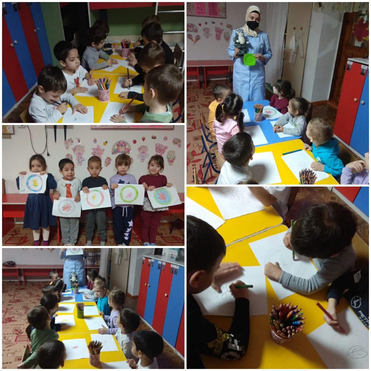 Цель:учить правильным приемам закрашивания краской,не выходя за контур, узнавать цвет и называть его.Младшая группа "Мишутки "
