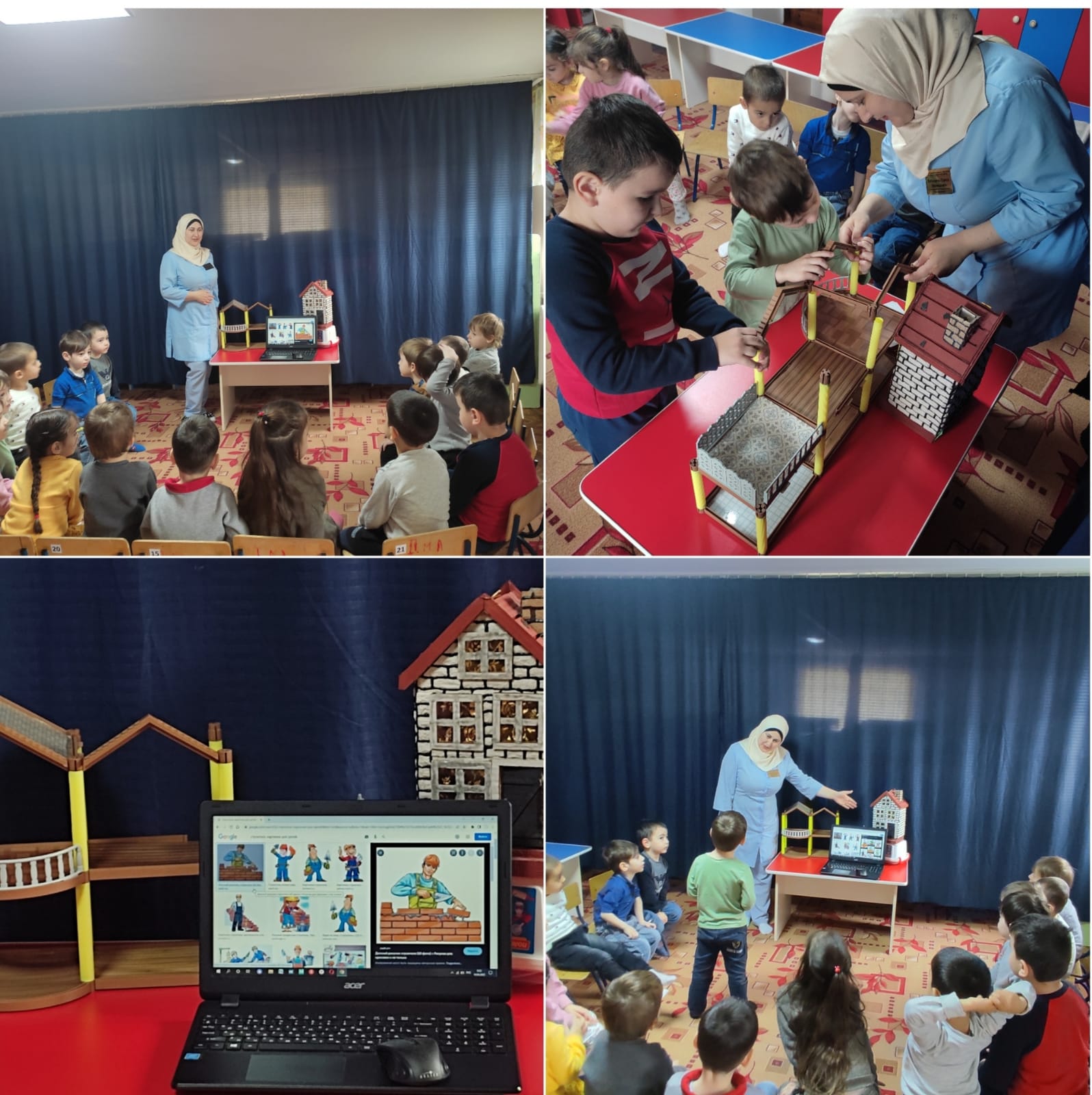 Цель: формировать понятие "строитель"; воспитывать активность, самостоятельность, уважение к людям любой профессии.Младшая группа "Мишутки".