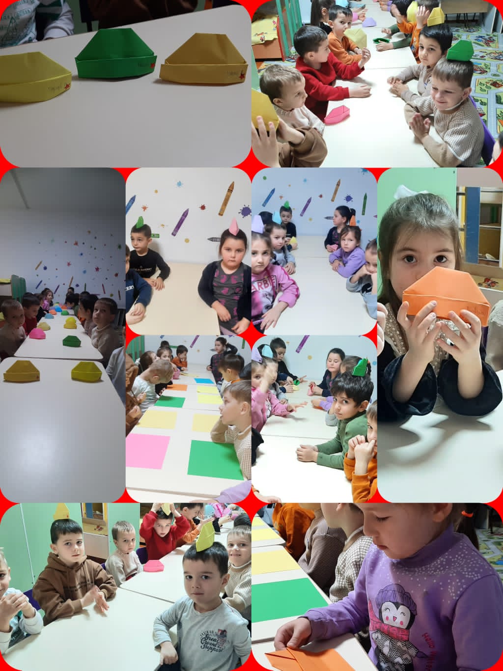 Цель: учить складывать ровно листы бумаги, соединяя концы и углы; развивать способность конструировать по собственному замыслу пилотку из бумаги.Средняя группа "Чебурашки".
