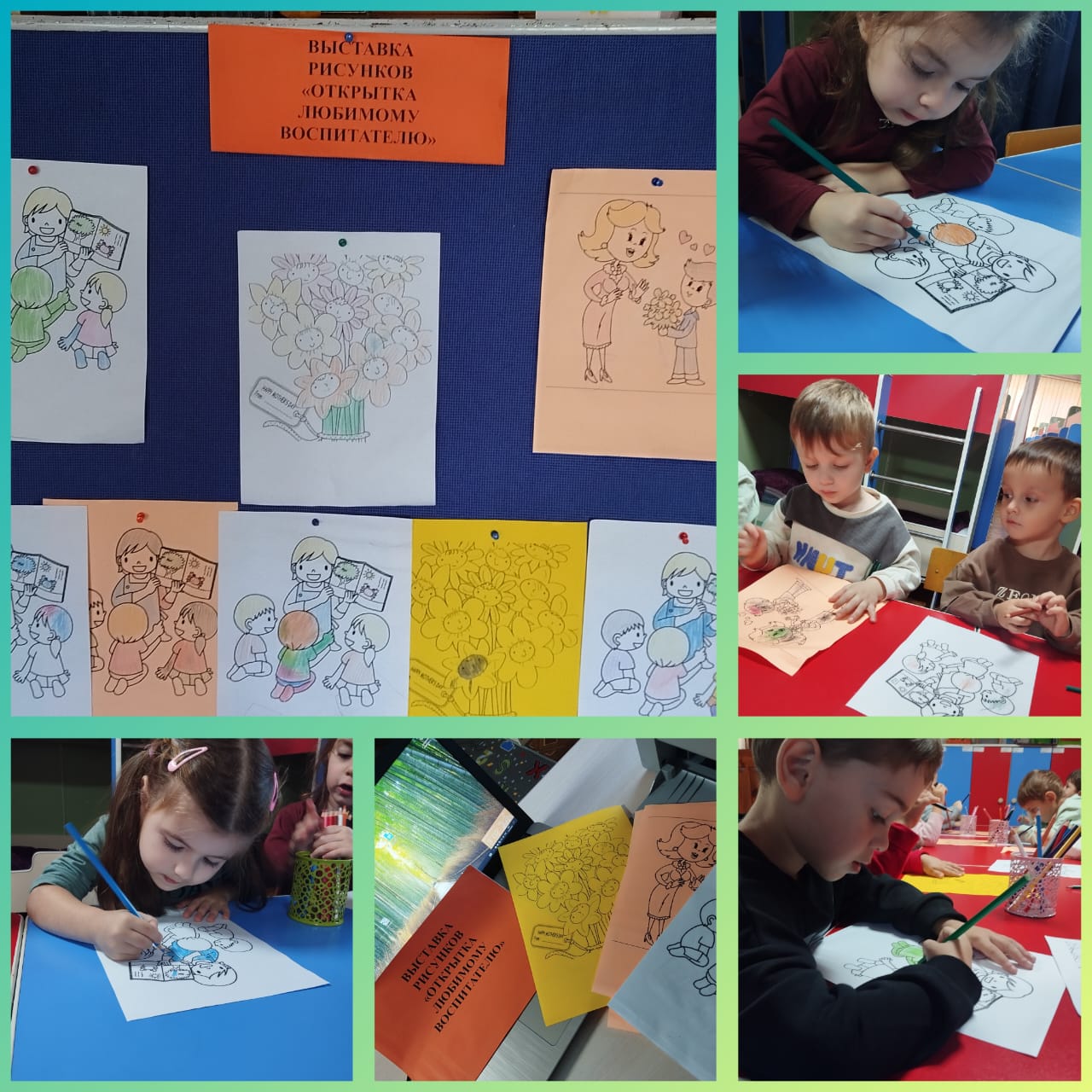 Выставка рисунков"Открытка для воспитателя". Младшая группа "Мишутки"