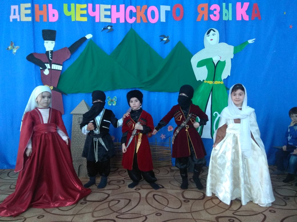 25.04.2018В МБДОУ Детский сад "Дженнет"с. Виноградное прошел утренник, посвященный к Дню Чеченского языка. С утра в ДОУ царила праздничная атмосфера, дети одеты нарядно, особенно радовал глаз национальная одежда на них. На празднике были прочитаны стихи, сыграны сценки, в которых выражалось уважения, любовь чеченскому языку, традициям и обычаям. В целях формирования положительных ценностных ориентаций, прошло мероприятие, посвященное Дню Чеченского языка. Эти маленькие Джигиты и стройные горянки воспитанники МБДОУ Детский сaд "Дженнет" с. Виноградное